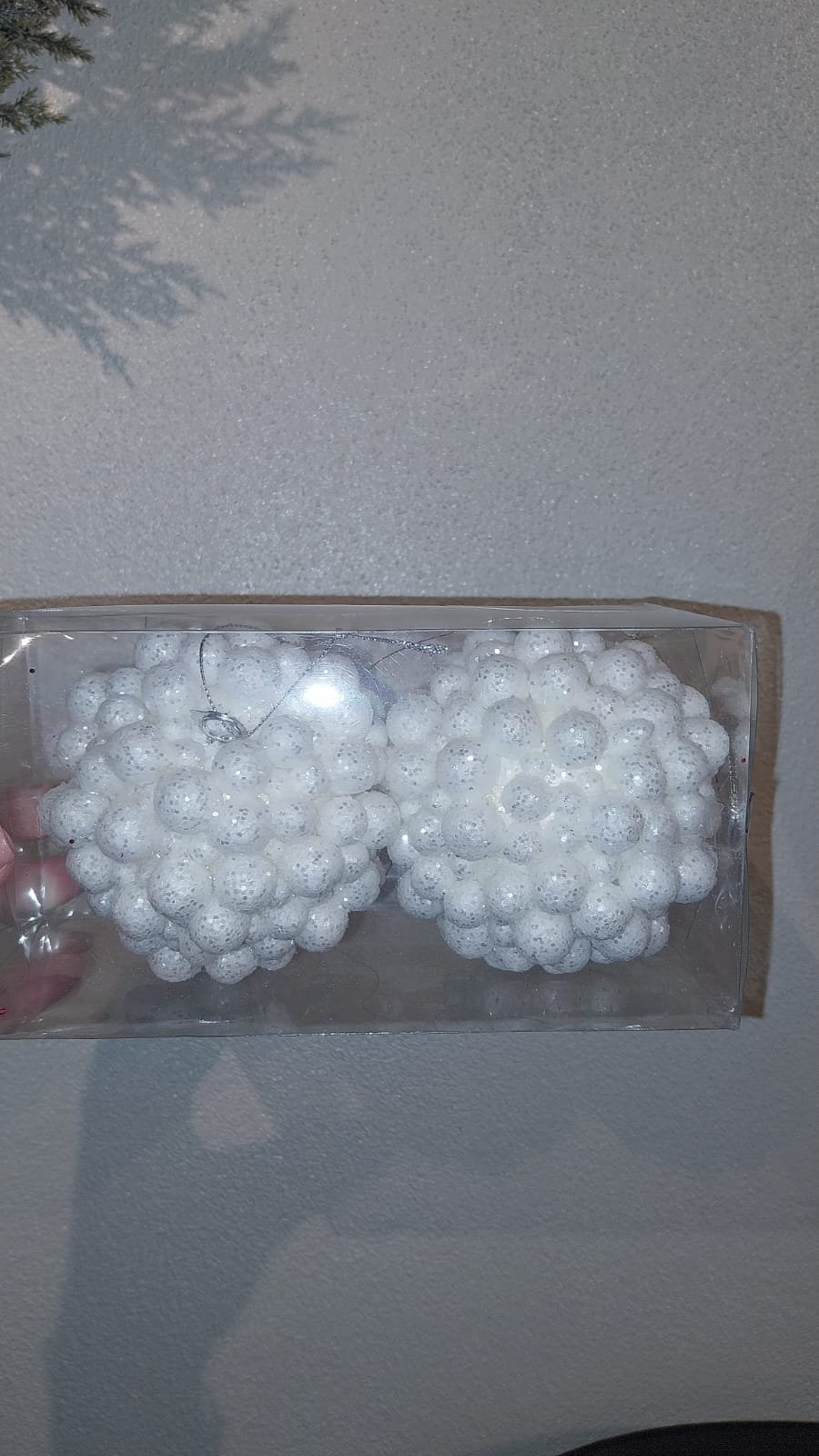 KIT BOLA 02 PCS DECORADA BRANCO 10CM CASA NATALE CE0282