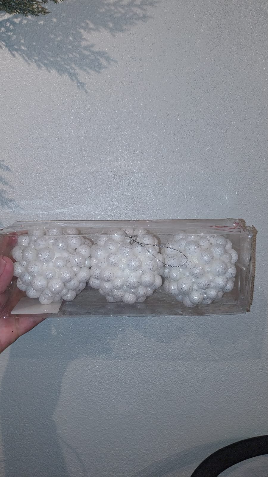KIT BOLA 03 PCS DECORADA BRANCO 8CM CASA NATALE CE0281