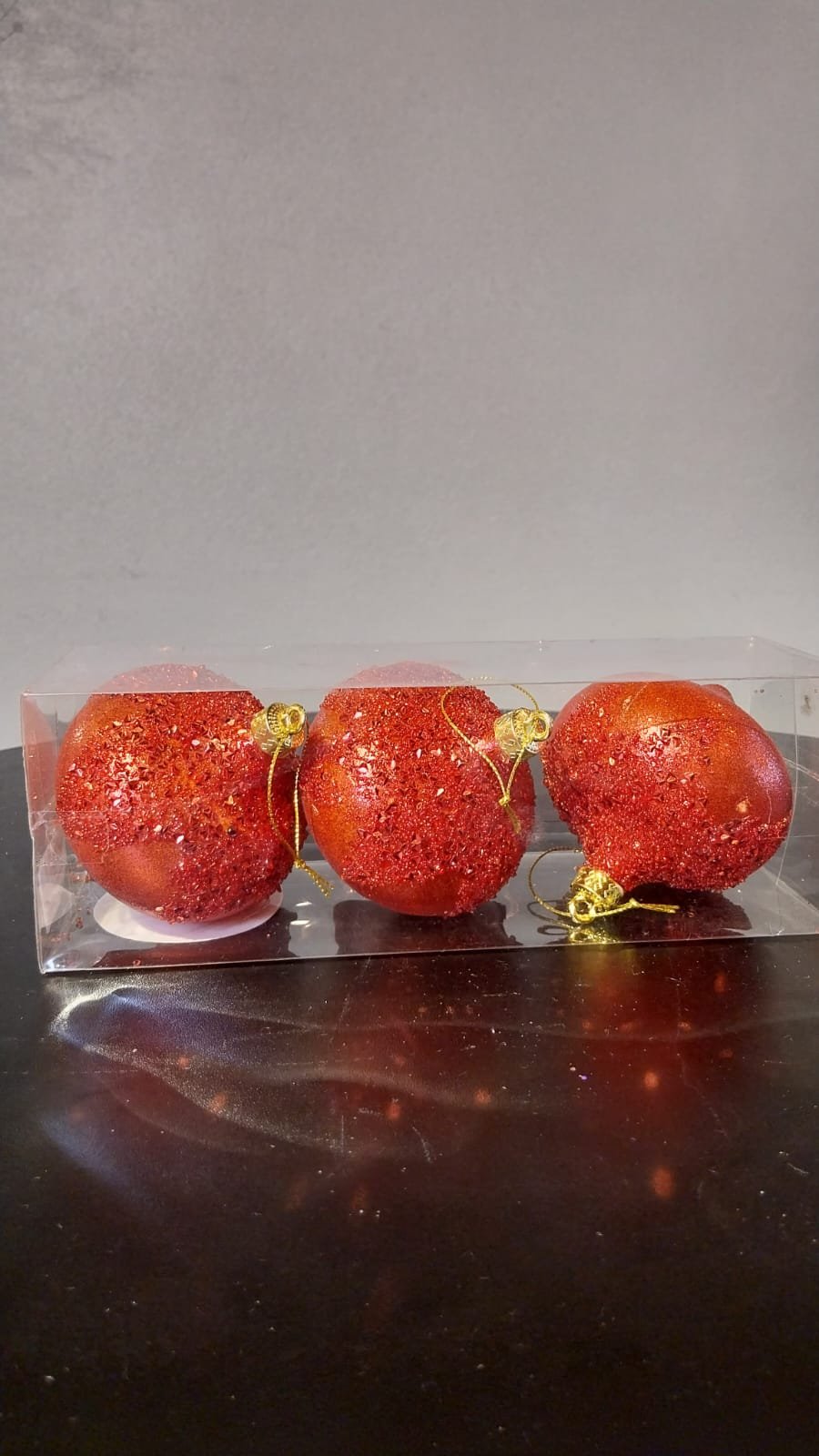 KIT BOLA 03 PCS DECORADA VERMELHO 8CM CASA NATALE CE0224