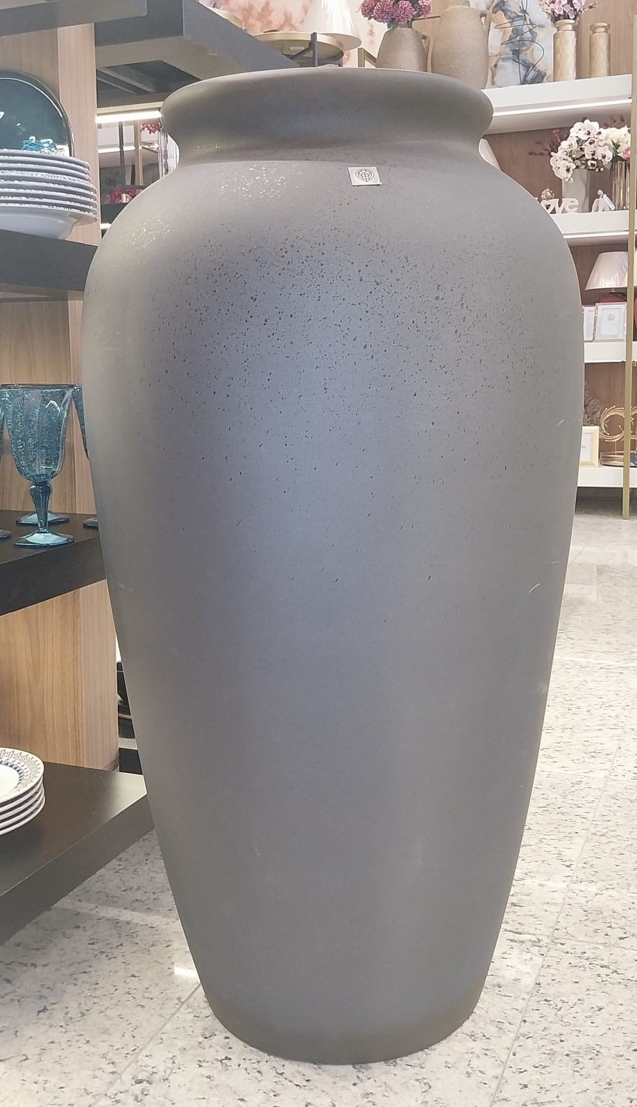 VASO VENEZZA M FIBRA DE VIDRO CINZA FOSCO PEROLIZADO BORDA MARROM FOSC MCA 40.M098